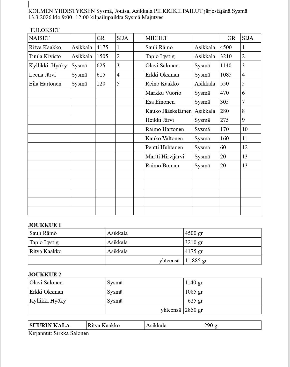 | Kauko Kalliosaari | 1300 | 3. | |||