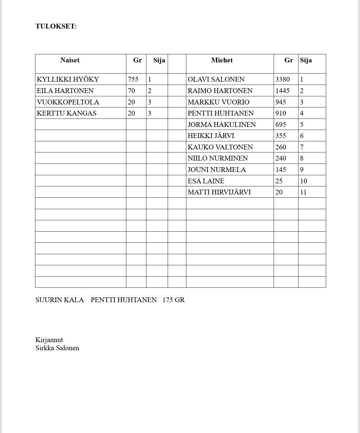 | Veikko Sireni | 360 | 13. | |||